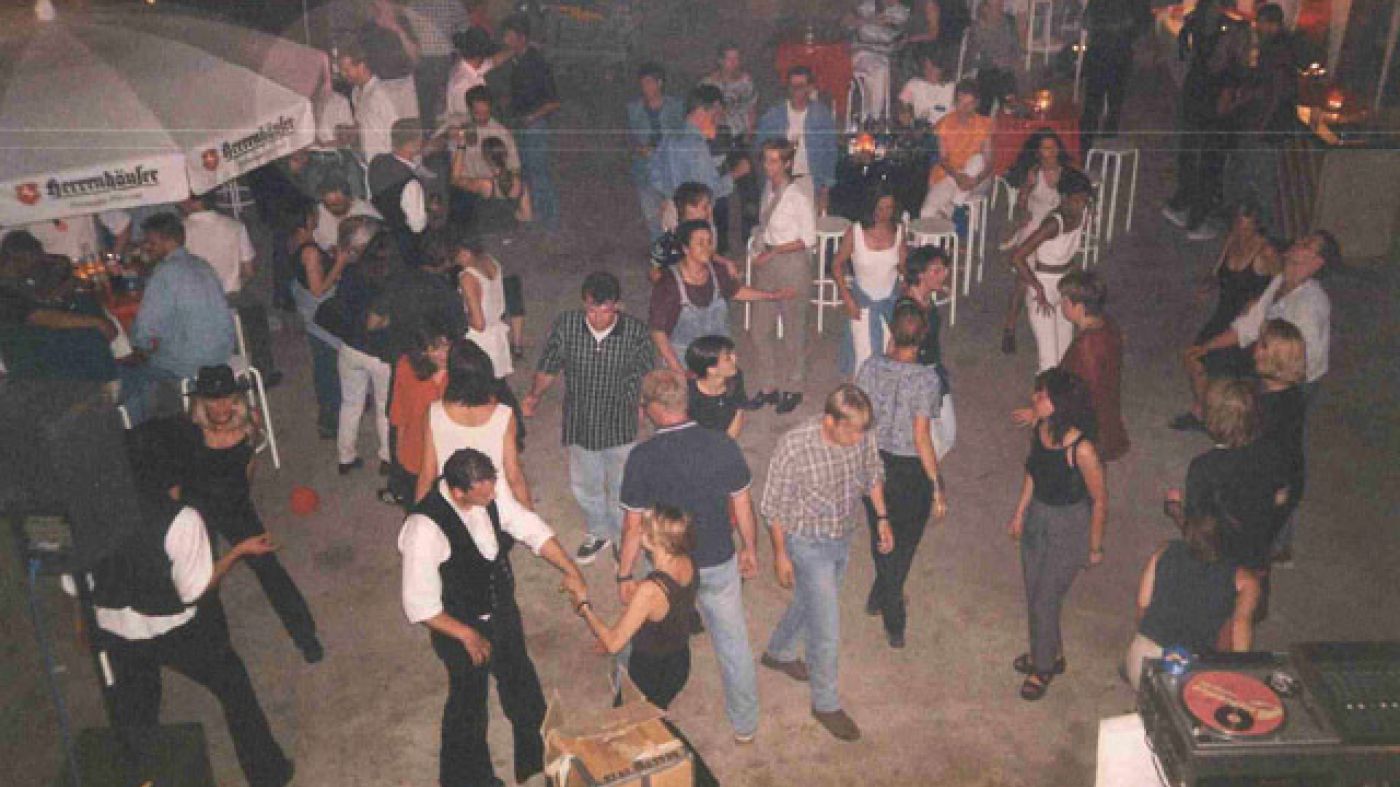 1999 wurden 5 Jahre Fuhrberger Zimmerei legendär gefeiert. Das war noch die Zeit als alle Gäste auf die Tanzfläche strömten. Unten: Eines unserer begehrten T-Shirt’s, alle 2 Jahre gibt es eine Neuauflage. Übrigens verkaufen wir unsere T-Shirt's auch im Shop.